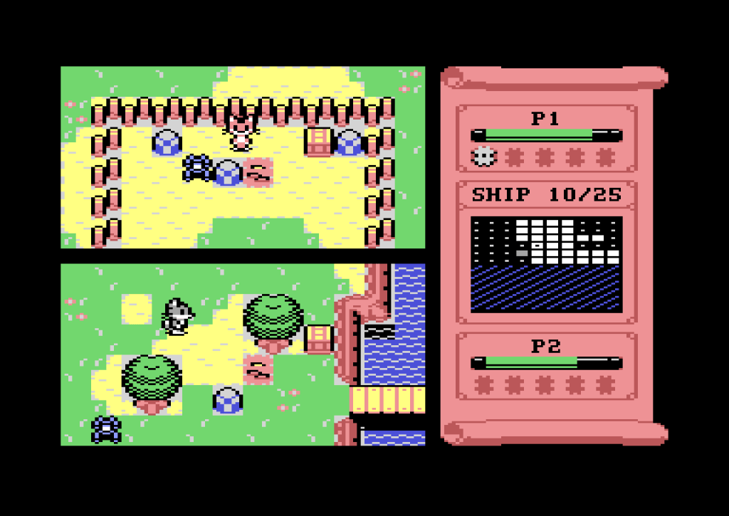 The split-screen gameplay and the essence of the game may remind you of an old favourite, the second part of Spy vs. Spy, where you also had to get off an island after collecting certain items.