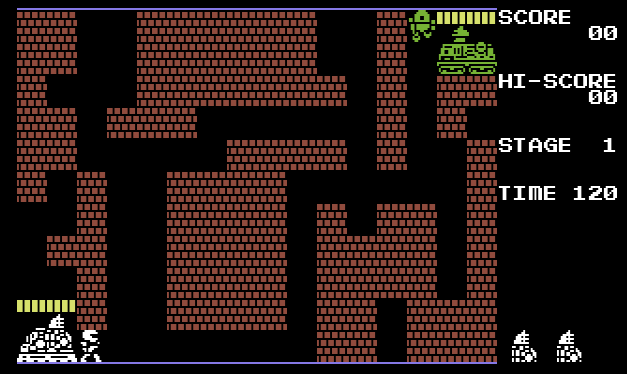 In this game the player controls a soldier instead of a tank and needs to kill all the enemy soldiers attacking from their green base object. While the attack waves are going on player also needs to destroy enemy base and defend their own. As a good feature of the game the brickwalls of the labyrinth-like places are destroyable.