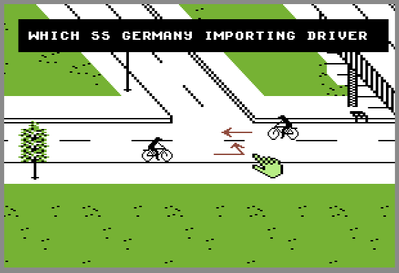 While searching for the transmitters, the game will periodically pause to ask the player about certain traffic situations, such as which road user has the right of way. The player must also regularly refuel at one of the service stations. If the player runs out of petrol, an automatic refuelling will occur and the player will pay penalty seconds.
