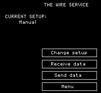 To send or receive news with modems over another computers, you can also do this with selecting the Wire Service from The Newsroom Menu. For this the two computers sending and receiving data must be set up at the same baud rate.