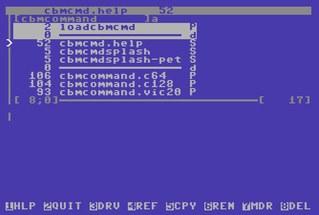 CBM-Command is an orthodox file manager similar to Norton Commander.