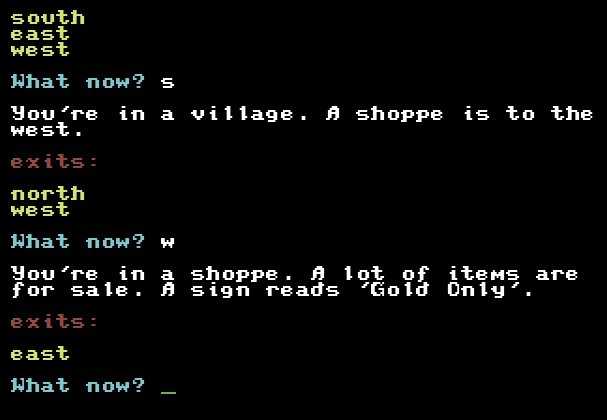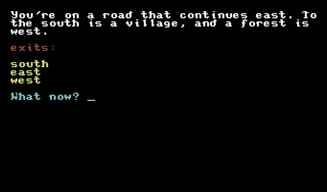 Nothing fancy at all here, but I’m just pleased that I managed to squeeze a text adventure into such a small space!