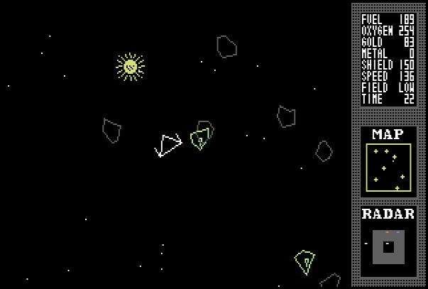 The game also includes great intro screenshots that present important information. As well as space travel and shooting, there are a variety of valuable materials (gold, metal, fuel, oxygen) to trade to upgrade your spaceship. Trading can be done at one of the eight Verge stations.