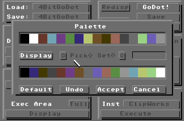 It first appeared in the German computer magazine 64’er in July 1993 as “program of the month”. GoDot was modelled on the Amiga Art Department’s Professional 2.0 program in its design, structure, function and purpose.