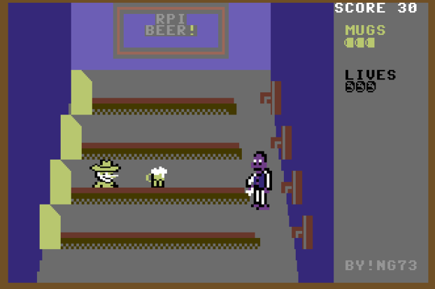 Another classical game has been written by a talented coder (Nello Galiano) in Basic with Petscii graphics. At this time for participating in the phaze101 and RPI (retroprogrammers inside) Tapper jam.