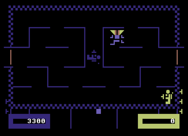 This is a Wizard of Wor clone remade entirely in PETSCII graphics. The game mechanics are very similar to the original, although slight differences are possible.