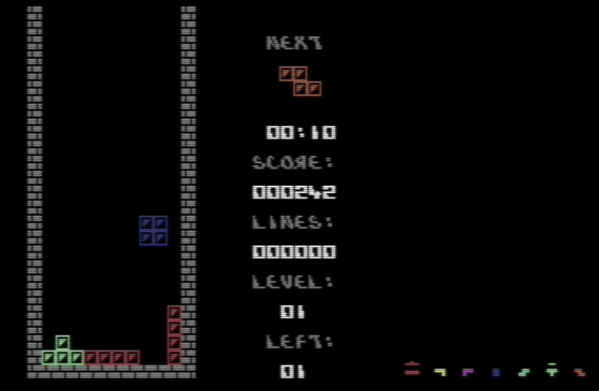 This project is a clone of the classic Tetris game, developed for the Commodore 64 (C64) using Kick Assembler. The aim was to recreate the core mechanics of Tetris, including piece movement, rotation, line clearing, and scoring, while working within the constraints of the C64’s hardware.