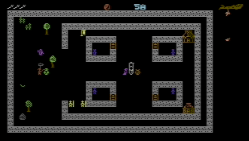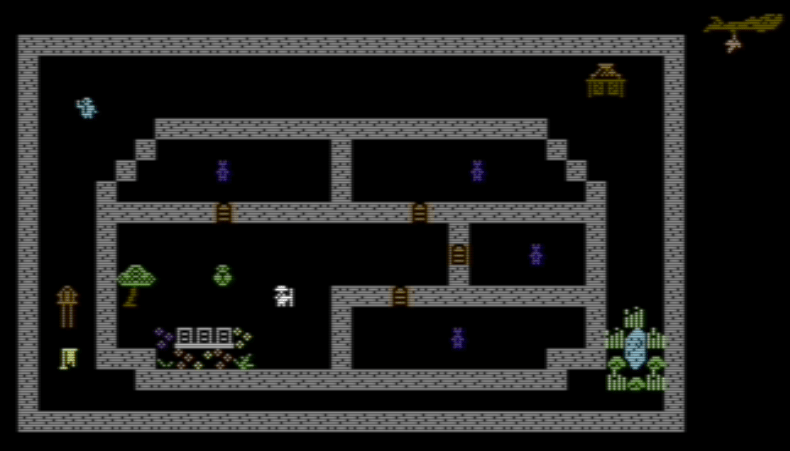 The game is controlled by the joystick in port 2 or the WASD keys and spacebar. The fire button/spacebar will only be needed to navigate menus and advance to the next level. They won’t be needed during gameplay. To attack or collect items, just bump against them, like you would do on an old-school RPG, or an old Y’s title.