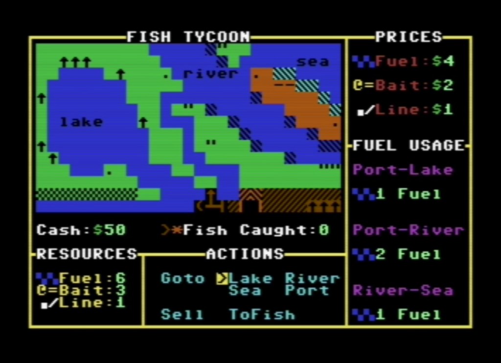 Fish Tycoon is a meditative and non-violent simulation game designed for Commodore 64. It captures the essence of the joy and serenity of fishing. Here are the highlights: