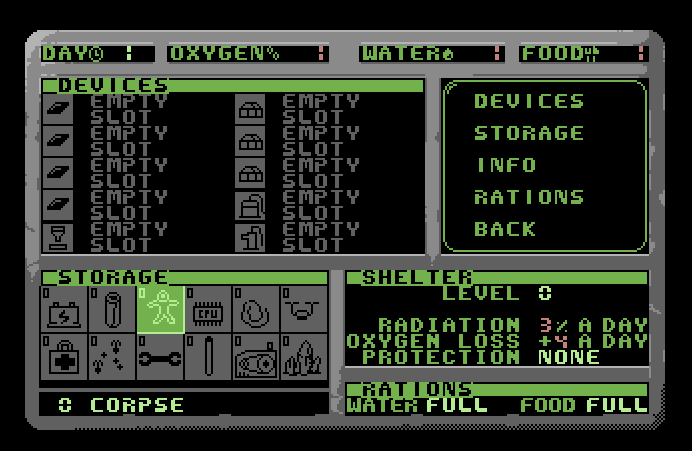 After a disastrous landing, you must carefully manage available resources for survival. Every game element has at least one purpose, some obvious and others requiring detailed observation.