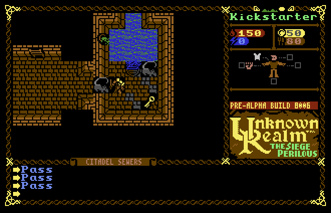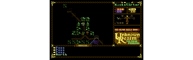 Unknown Realm: The Siege Perilous is an 8-bit fantasy role-playing game (RPG) developed by Stirring Dragon Games for the Commodore 64 and PC, drawing inspiration from classic ’80s RPGs such as Ultima and Wasteland.