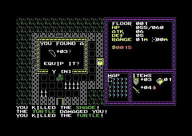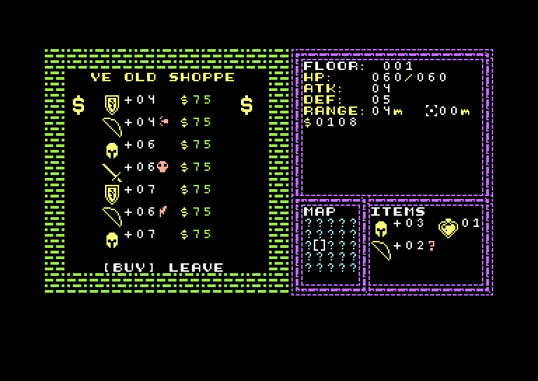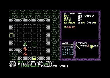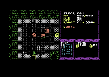 Choose your weapons (and your next moves) carefully, your life depends on it! Strategy is a part of the game, which creature is a larger threat and should be attacked next for example. The title screen shows the best floor score that you can try to beat. If you beat it, it will increase to reflect your latest attempt.