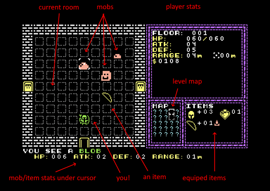 It was inspired by “Rogue 64” (a c64 game), “RogueCraft” (an Amiga game), and to some extent, Marvel Avengers Alliance (an online game that is now dead).