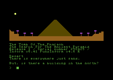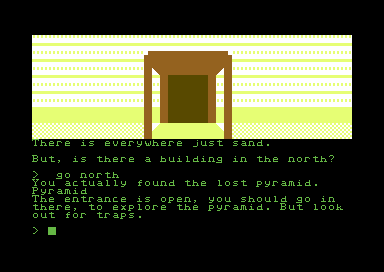 From the endless supply of text adventure games, this new game is the work of a talented creator called Leon. The point of the game is “The search of the ancient pyramid” which is still an interesting theme so I’m sure you’ll be amazed in this game too.