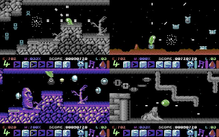- Visually detailed environments, optimized to push the graphical limits of the Commodore 64.