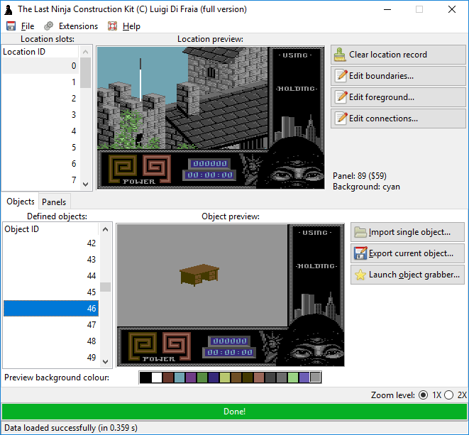The Last Ninja Construction Kit is an advanced development tool created by Luigi Di Fraia, designed to let users explore, edit, and even create new levels and games in the style of the legendary Last Ninja series for the Commodore 64.