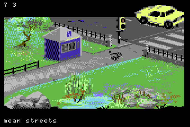 The game uses a 4:1 isometric ratio, which is rarely seen on the Commodore 64. This choice gives the visuals a unique perspective and sets CityCat: Prowl apart from other retro titles.