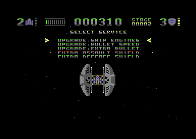 One of the game’s special features is that at the end of each level, you land at a support station where you can upgrade your spaceship with various enhancements, such as extra bullet and extra defence shield.