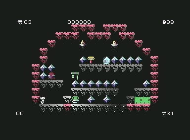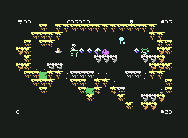 The game was written in Forth, using minimal machine code, it only has a few machine routines: IRQ, music/sfx player (from Odie), scoring.